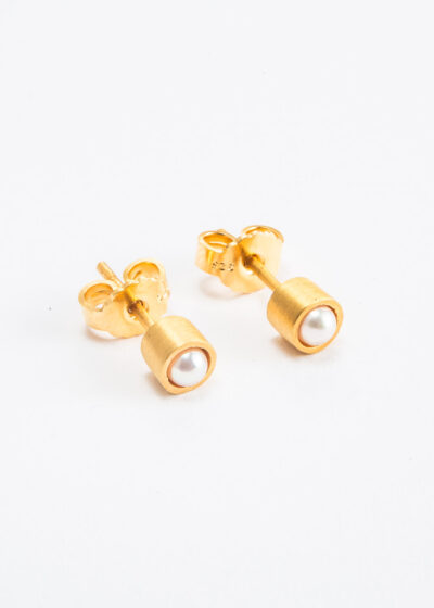 Die Ohrring sind aus Silber, dick vergoldet. Im Inneren ist eine Zuchtperle. Durchmesser 5mm.