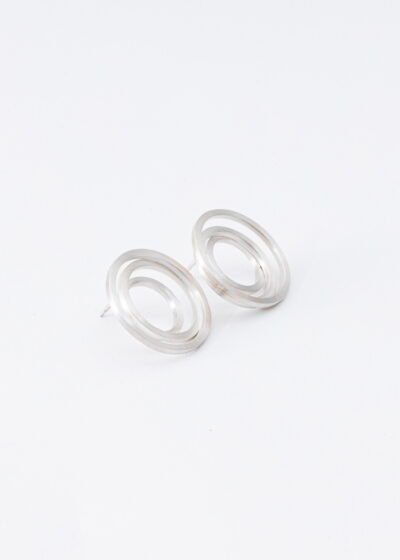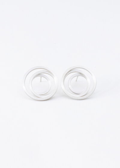 Diese Ohrringe aus Silber haben eine dynamische Form mit Tiefenwirkung. Sie sind leicht und angenehm zu tragen. Der Durchmesser ist 25mm.