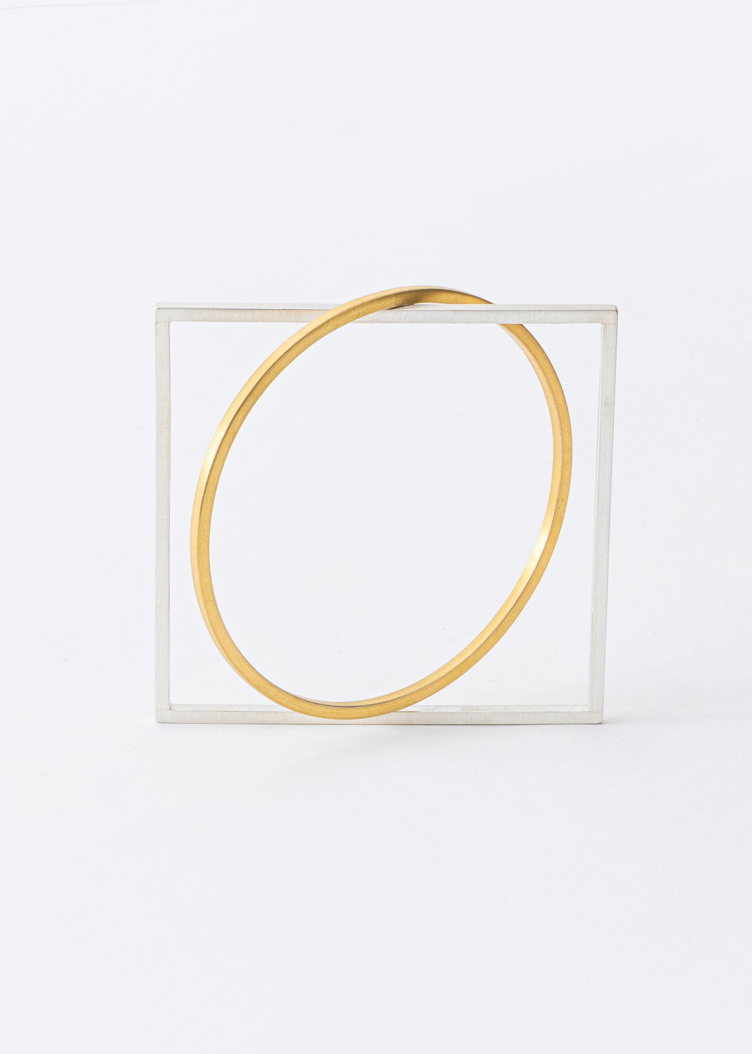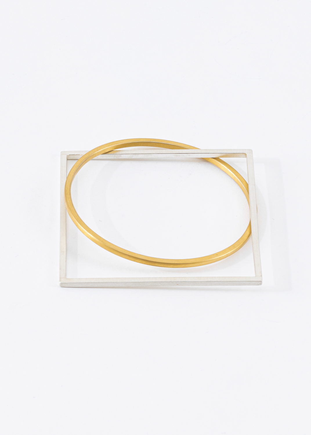 Die zwei schlichten geometrischen Formen ergeben im Duo am Handgelenk getragen eine ganz eigene und neue Form.
