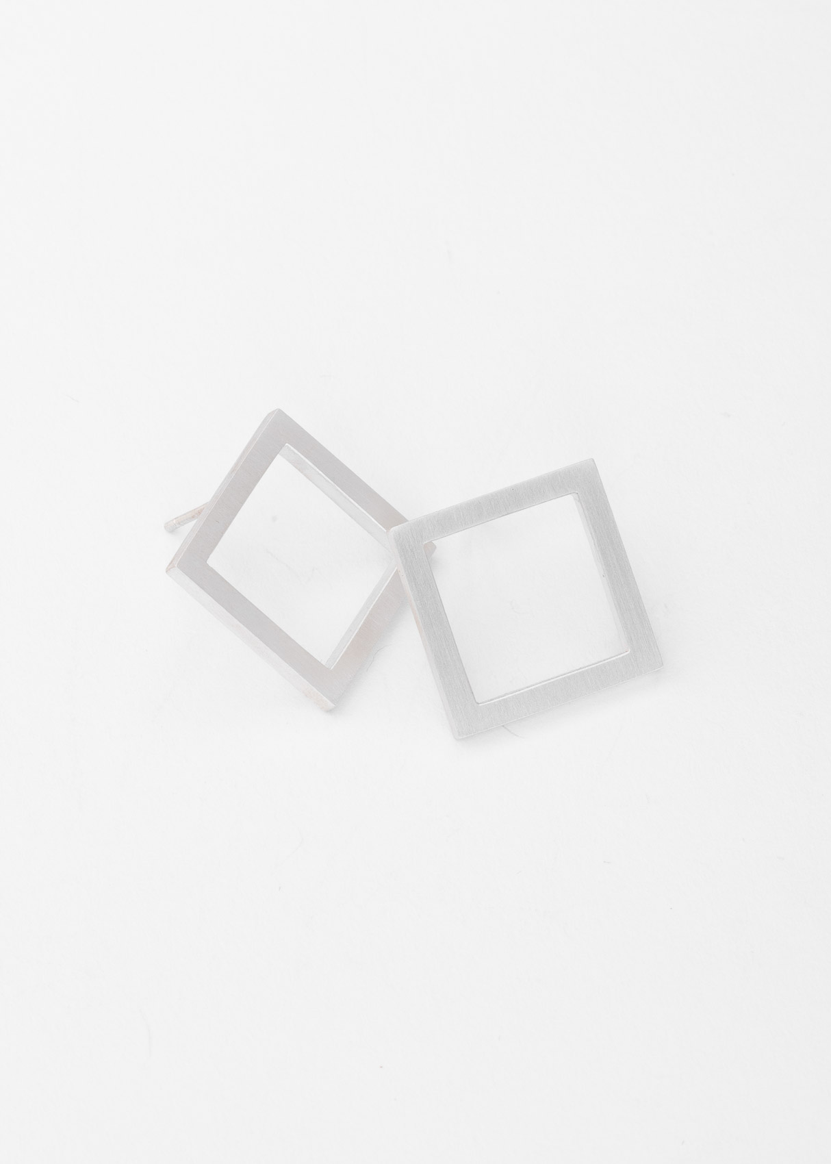 Die Ohrringe bestehen aus zwei verbunden Quadraten aus Silber. Die Länge der beiden Quadrate ist ca. 30mm.