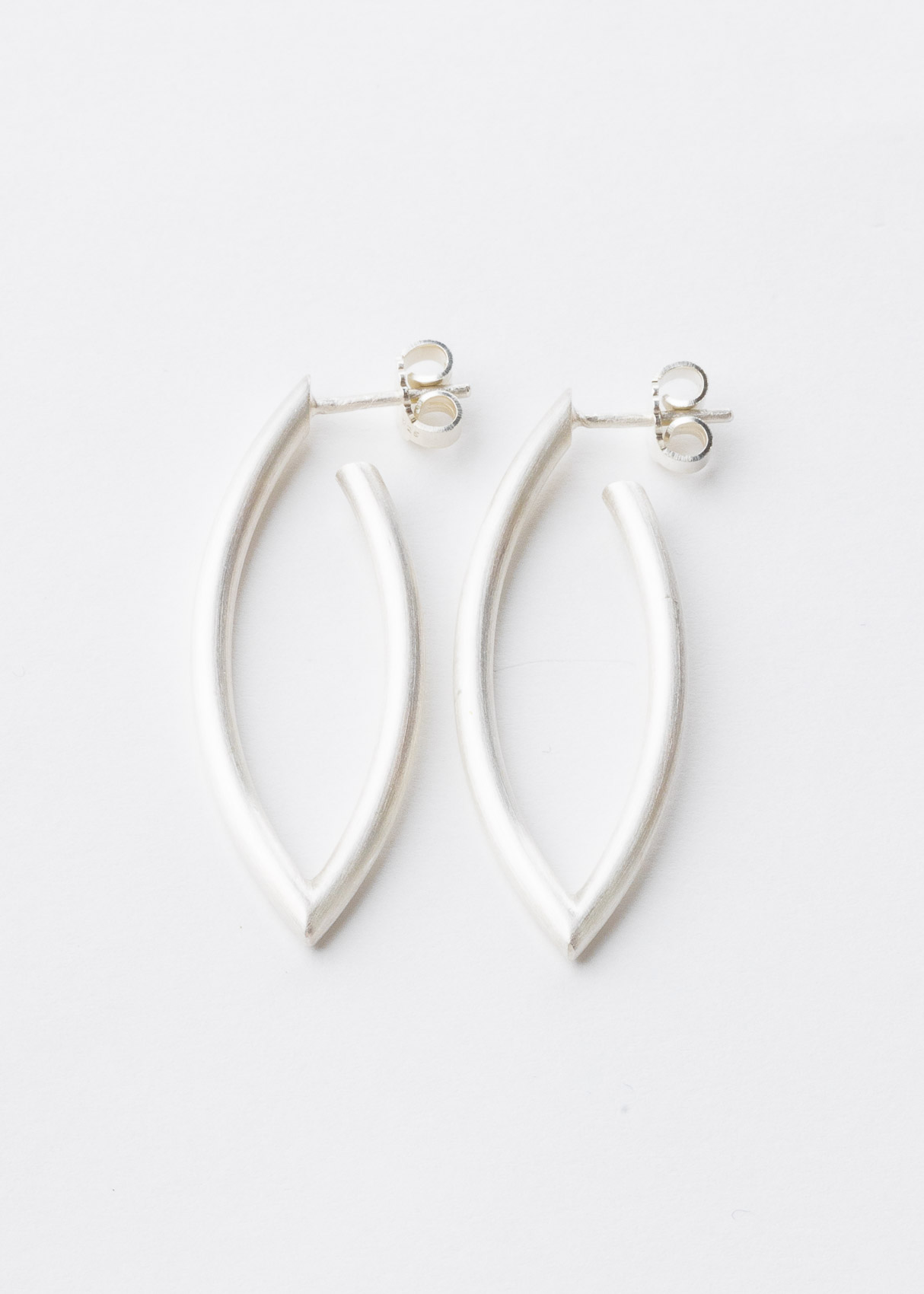 Die navetteförmigen Creolen sind aus Silber. Sie sind 16×45 mm groß.