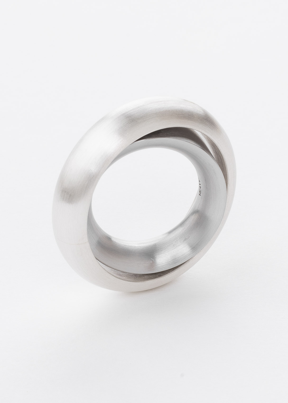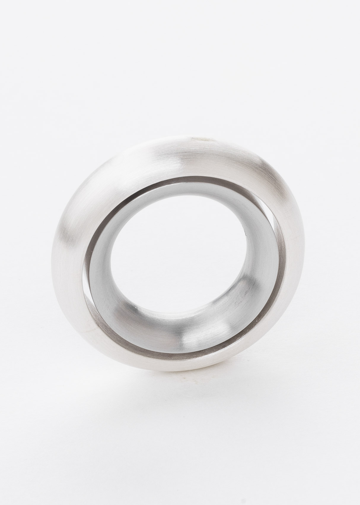 Der Ring (8mm) ist innen aus Edelstahl und außen aus Silber. Über eine Achse sind beide verbunden und können sich drehen.