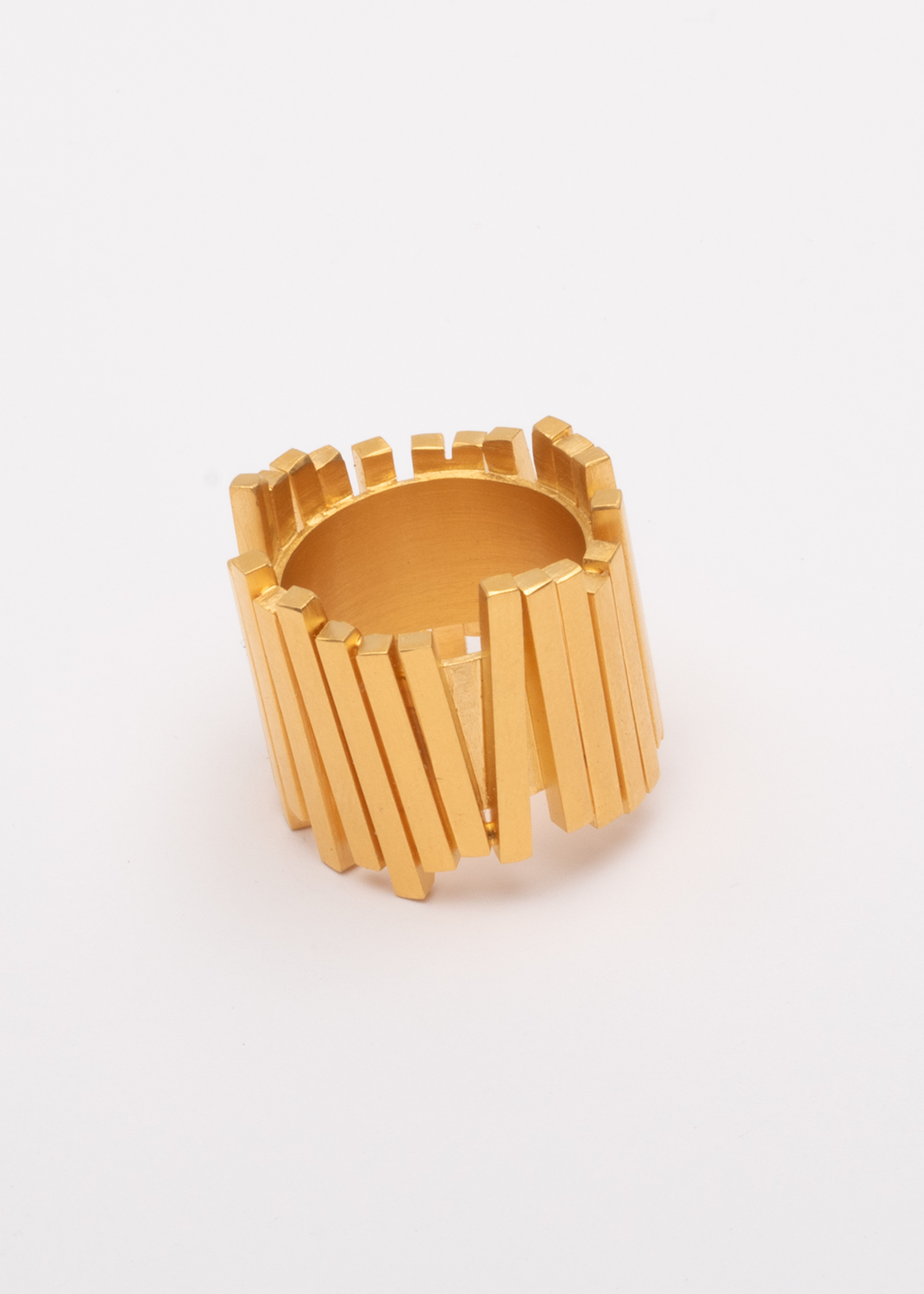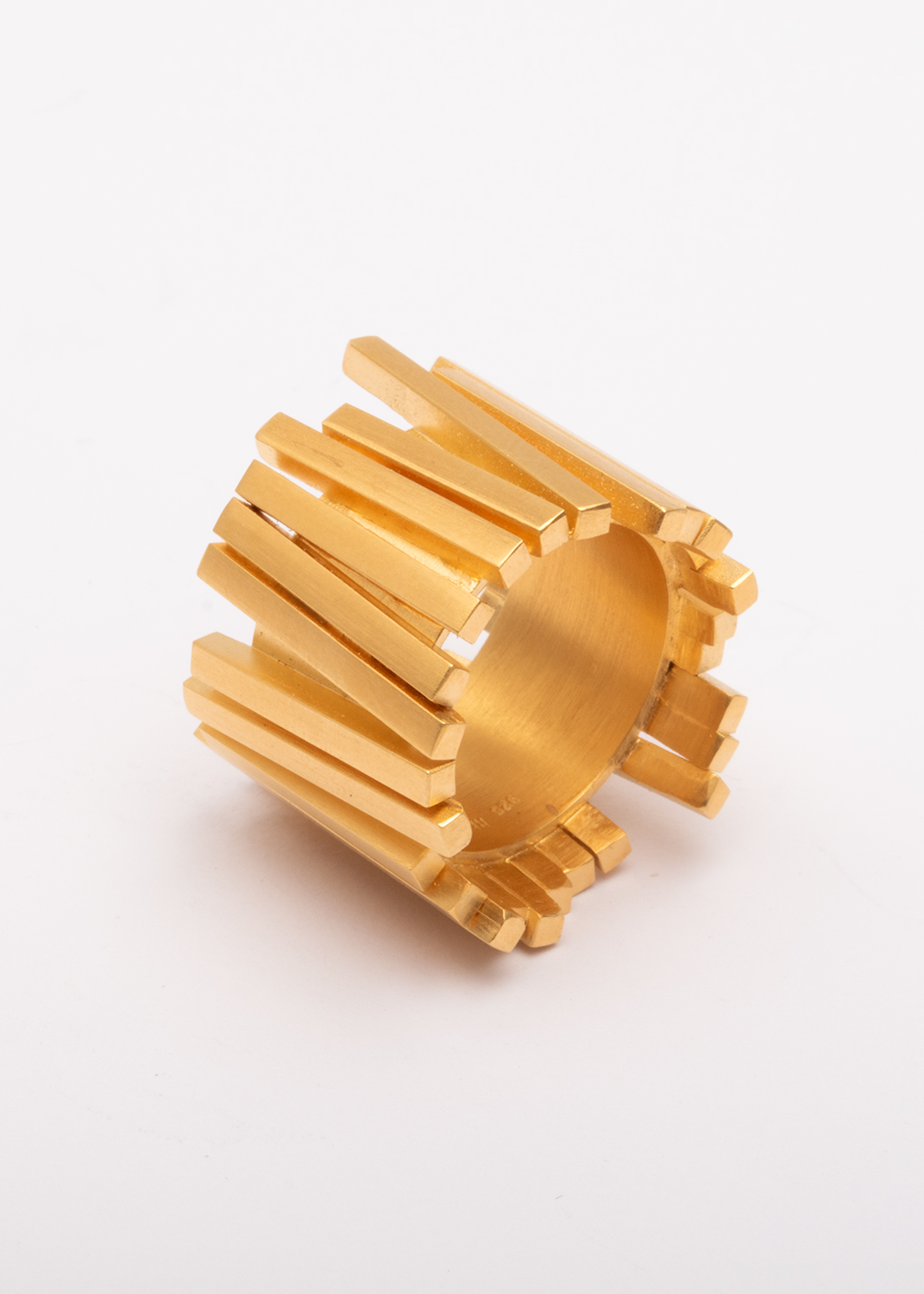 Viele Vierkant-Stäbchen auf Bandring. Silber vergoldet.