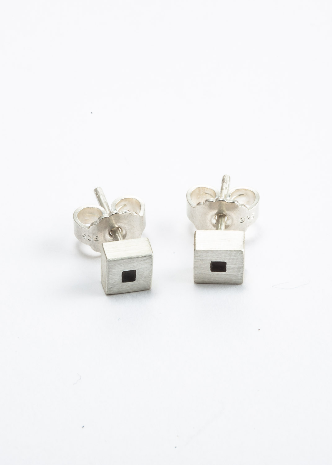 Kleine Ohrstecker aus Silber mit geschwärztem Quadrat.
