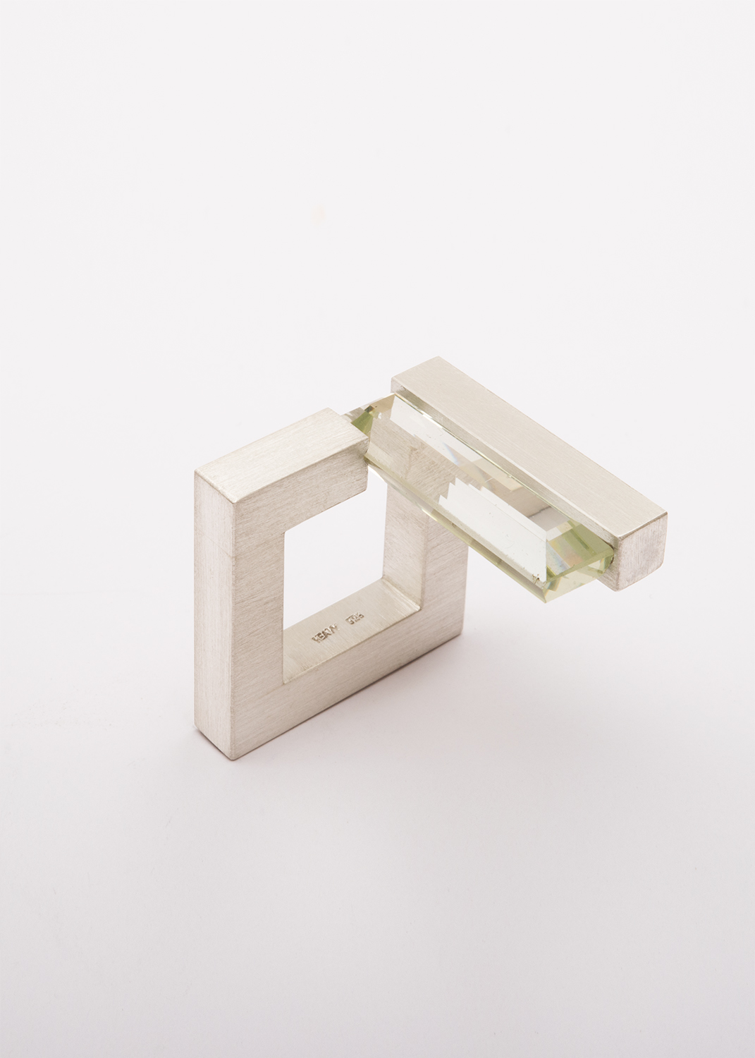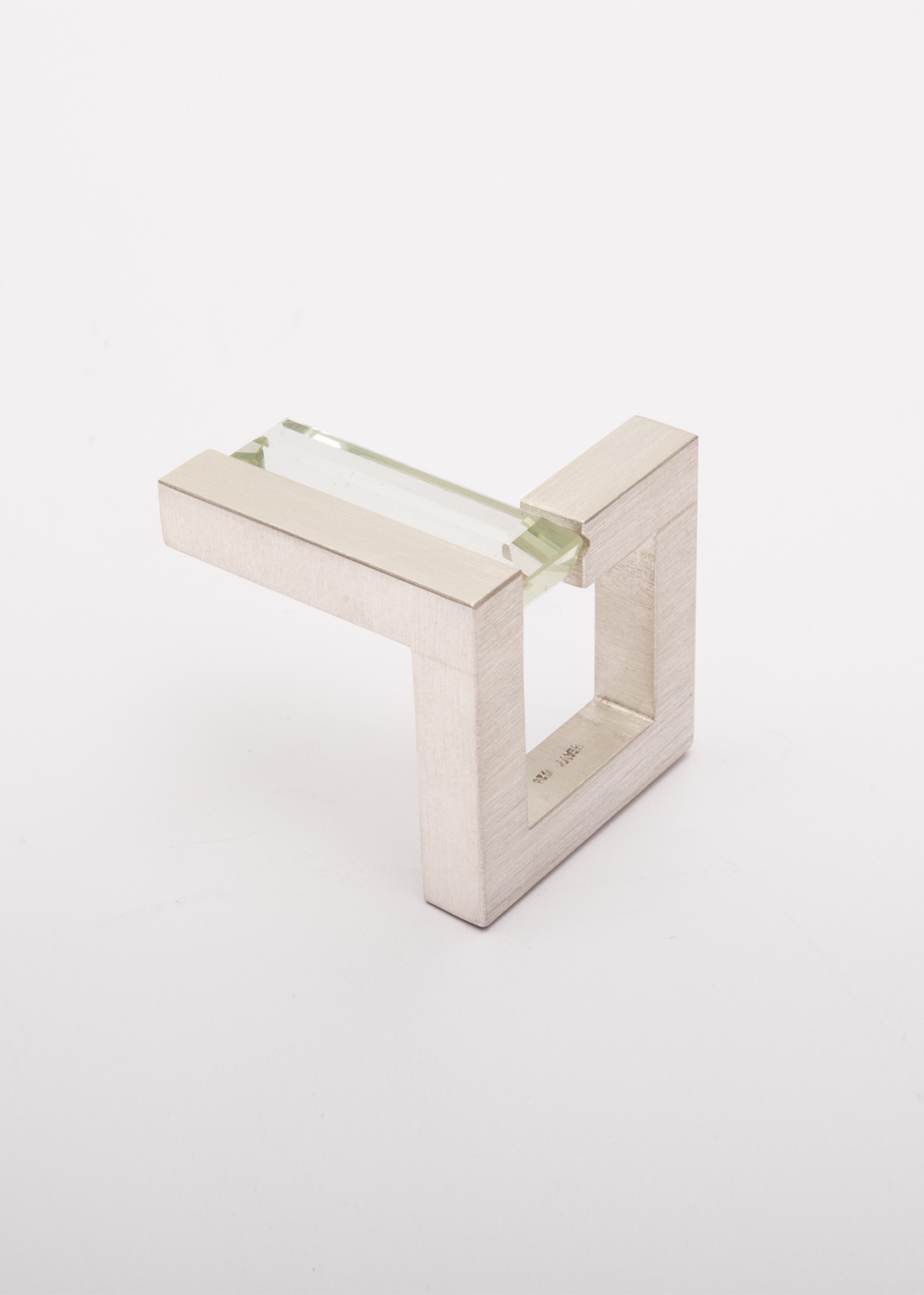 gelblicher Beryl in silbernen Ring eingespannt