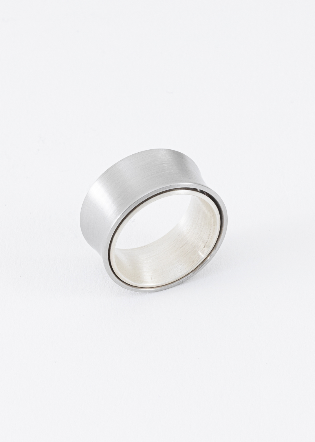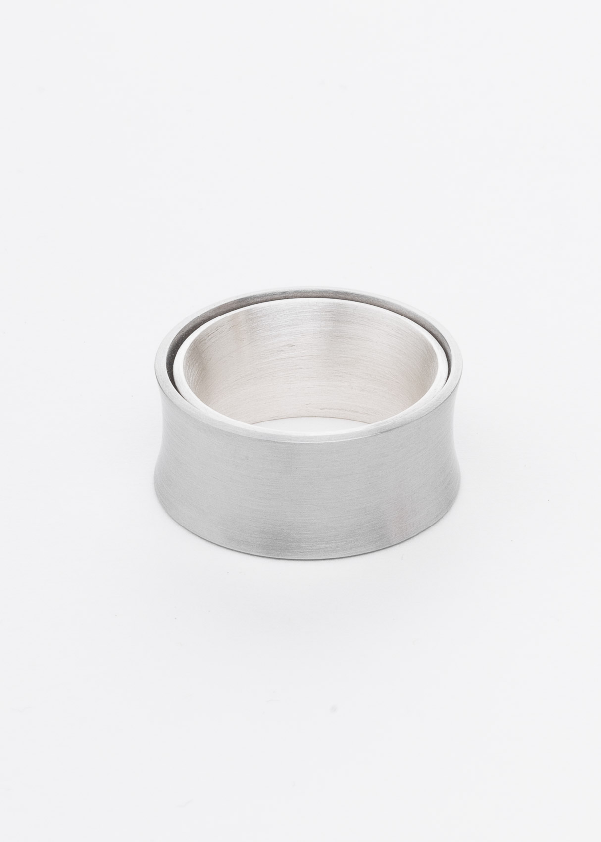 Beide Ringe sind leicht konkav und beweglich,der Innere ist aus Silber und der Äußere aus Edelstahl.