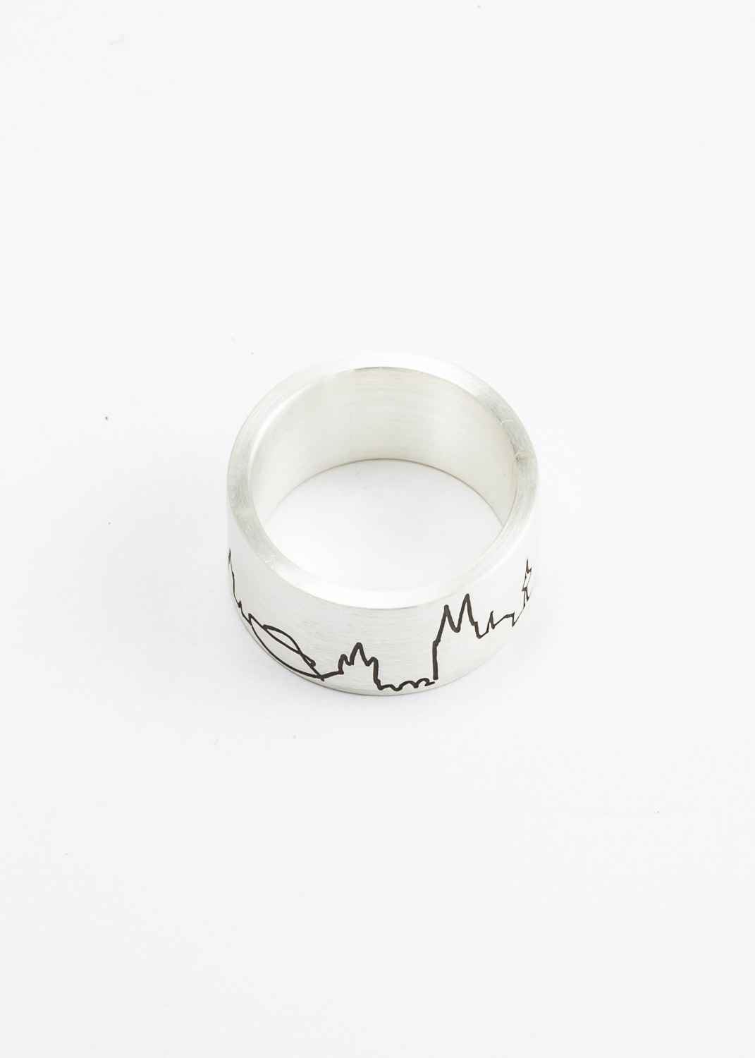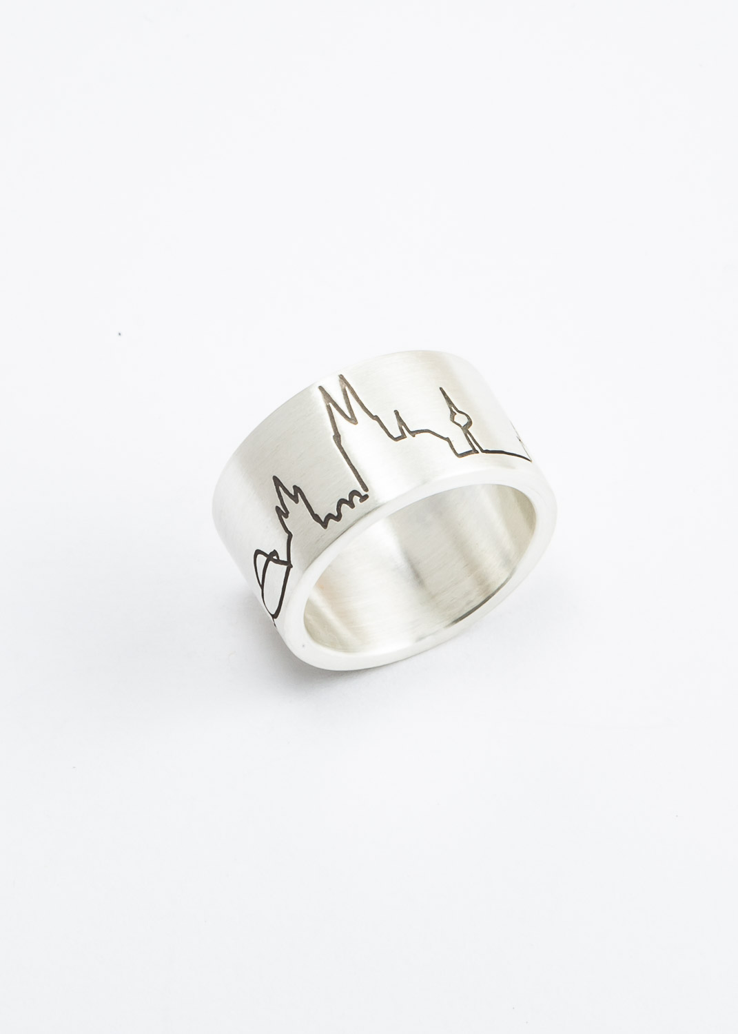 gerader Bandring mit Kölner Skyline. Es gibt verschiedene Varianten, individuelle Gravuren sind auch möglich.