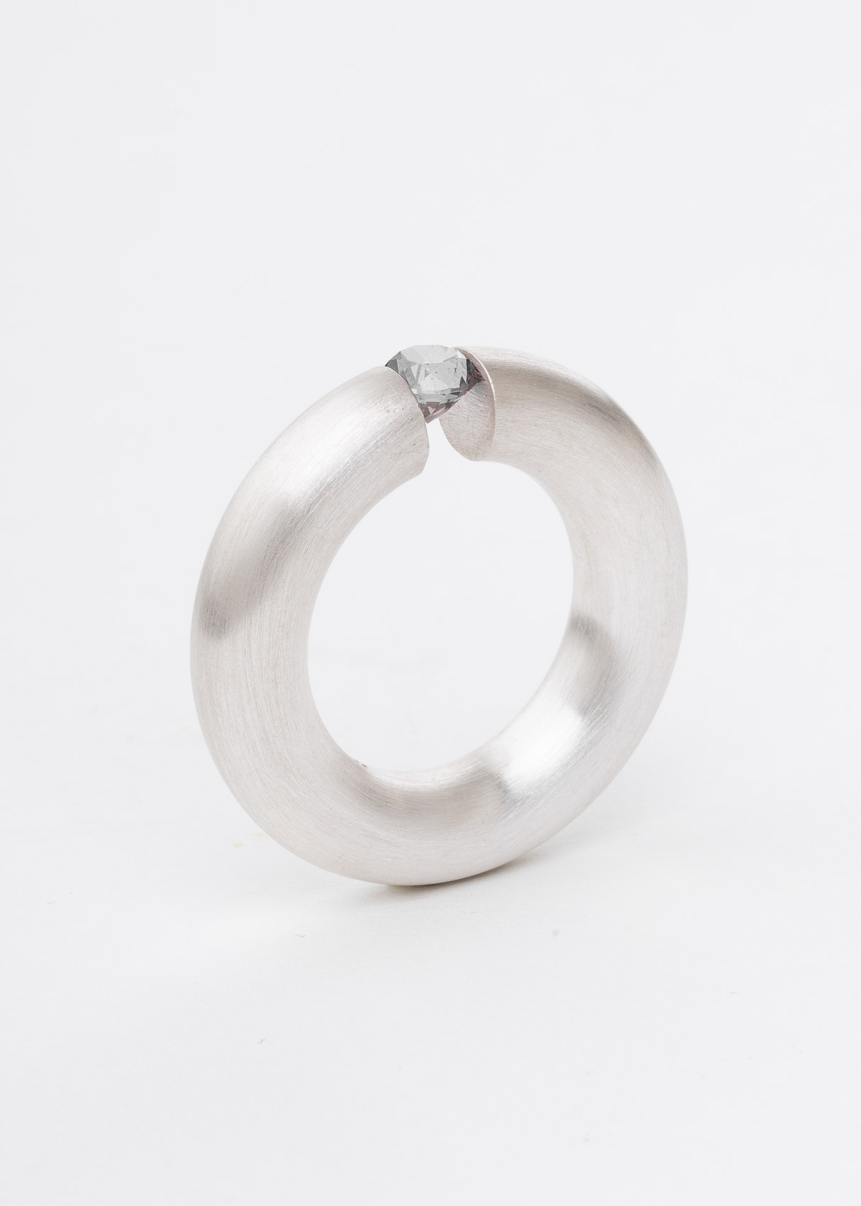 Runder Spannring aus Silber, hier mit Zirkonia.Verschiedene Steinvarianten möglich z.B. Aquamarin, Turmalin, Citrin, Granat etc.