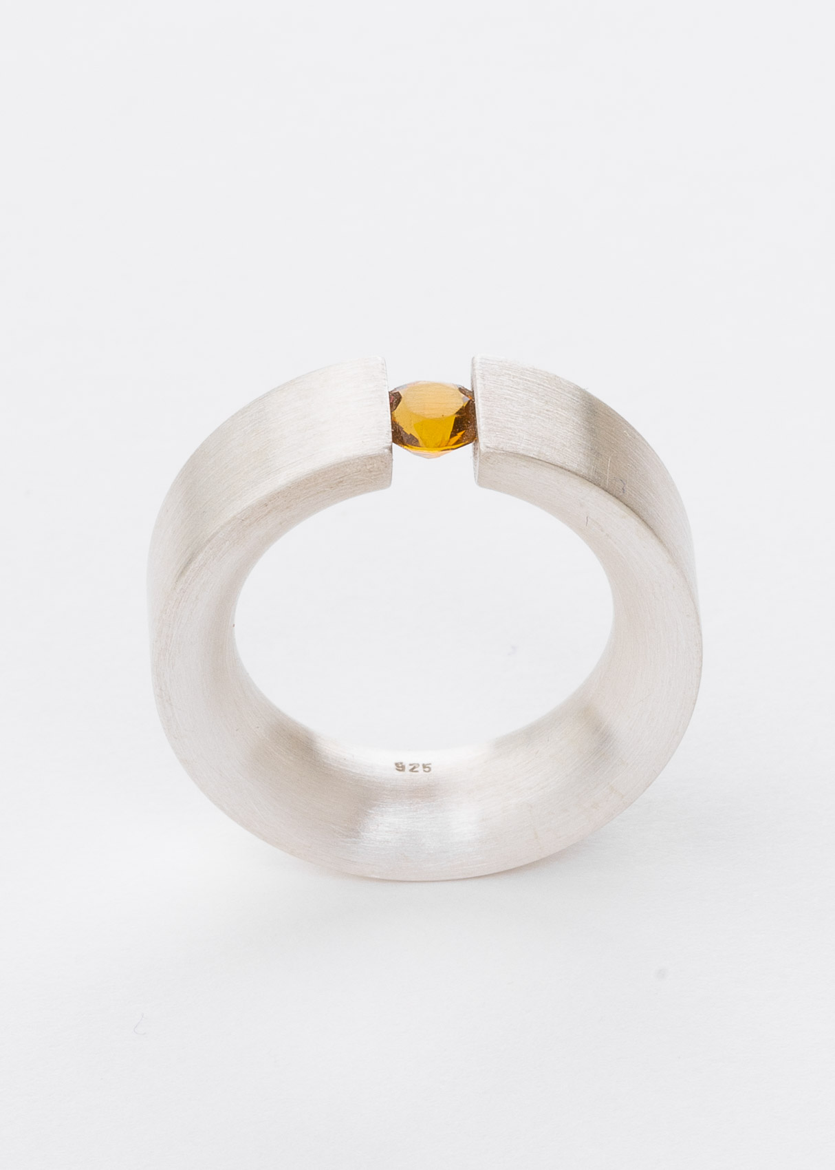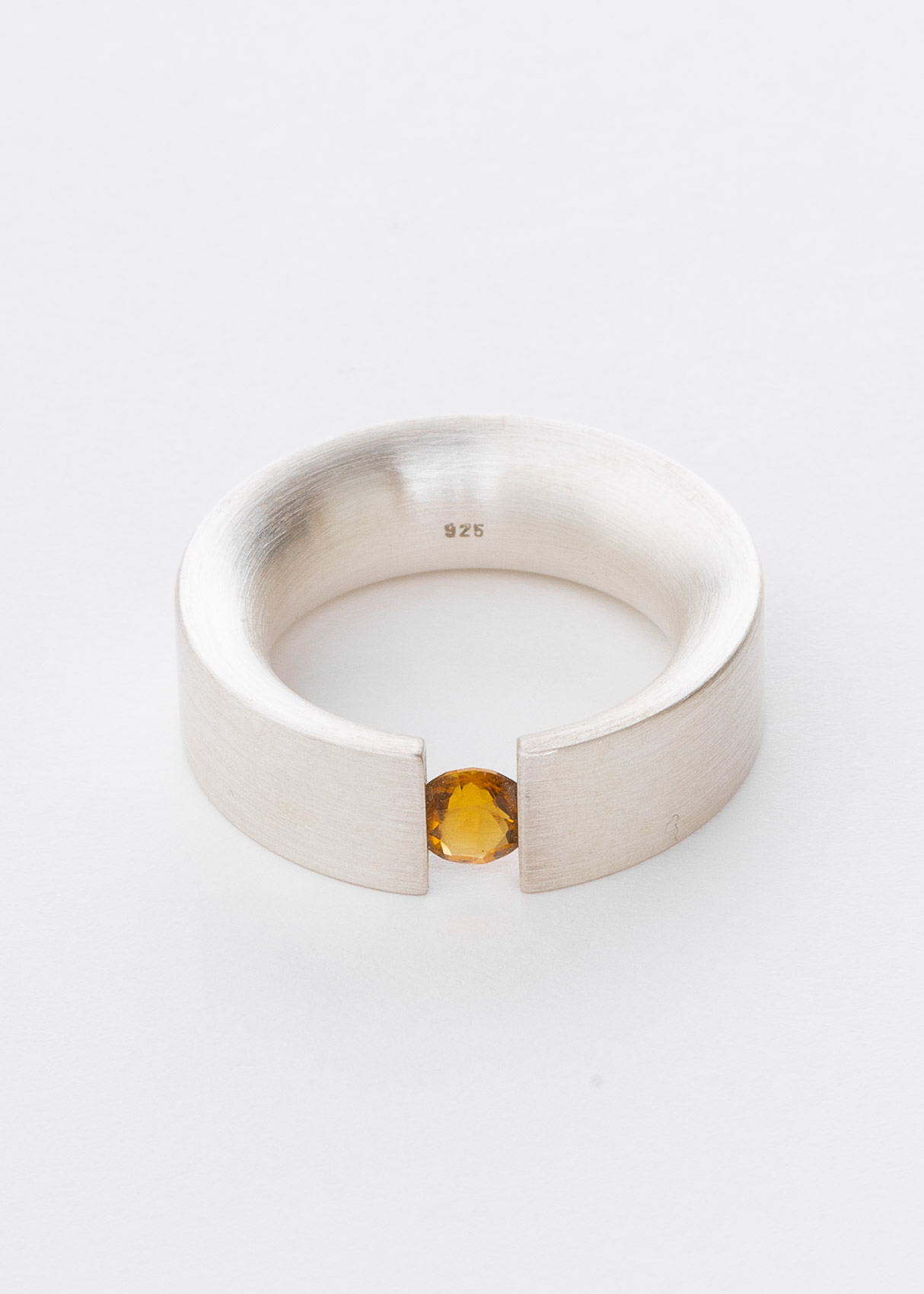 Halbrunder Spannring aus Silber (8mm), außen gerade und innen abgerundet. Der Stein ist ein Citrin (verschiedene Steinvarianten sind möglich z.B. Aquamarin, Turmalin, Granat u.a.)