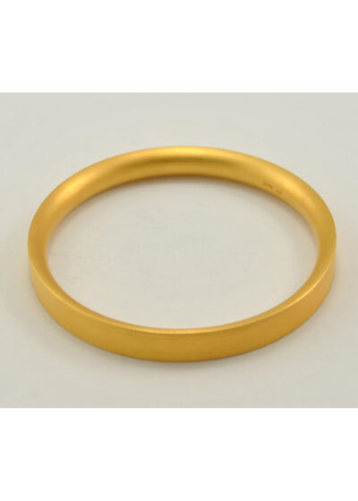 Der Gewölbte ist ein geschmeidiger Armreif, der sich durch die Wölbung angenehm trägt. Er ist aus Silber und außen dick vergoldet.
