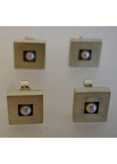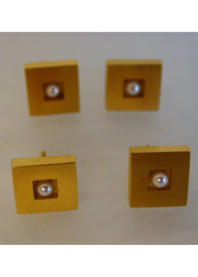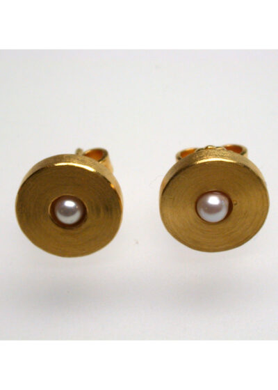 Die Ohrringe sind aus Silber, dick vergoldet, mit einem Brillianten in der Mitte.