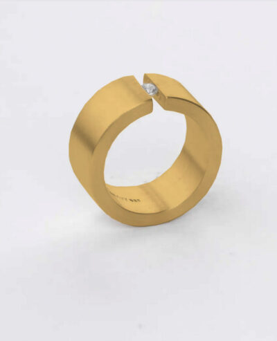 Der massive, breite Ring (16mm) ist aus Silber, dick vergoldet. Er ist leicht konkavgewölbt und lässt sich dadurch angenehm tragen. Er ist auch in Silber erhältlich